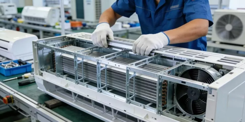 Käytetään jääkaappien ja ilmastointilaitteiden ulkokuoren rungossa ja sisäisissä tukiosissa; Pesukoneiden pohjakehykset; näyttöjen kehykset ja kannattimet; ulkokuoren runko ja sisäiset johtavat tukikomponentit paalujen lataamiseen jne. Vaatii kevyttä, suurta tarkkuutta ja esteettisesti miellyttävää pintaa, ja lisäprosesseja, kuten lävistys ja taivutus voidaan integroida.